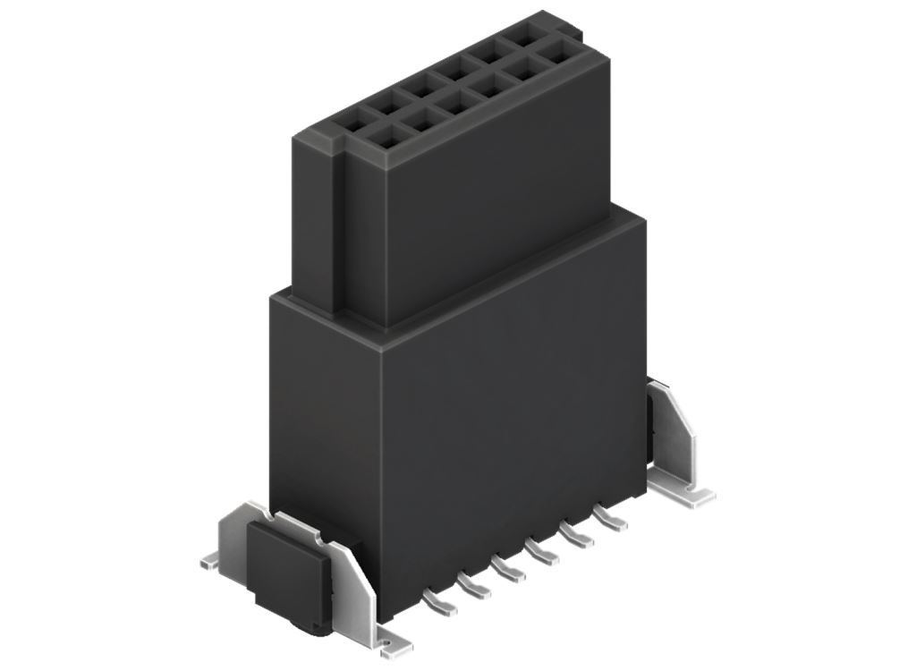 Złącze żeńskie płyta-płyta pływające 1,27 mm, pionowe 180° SMT, H=13,65 mm, seria